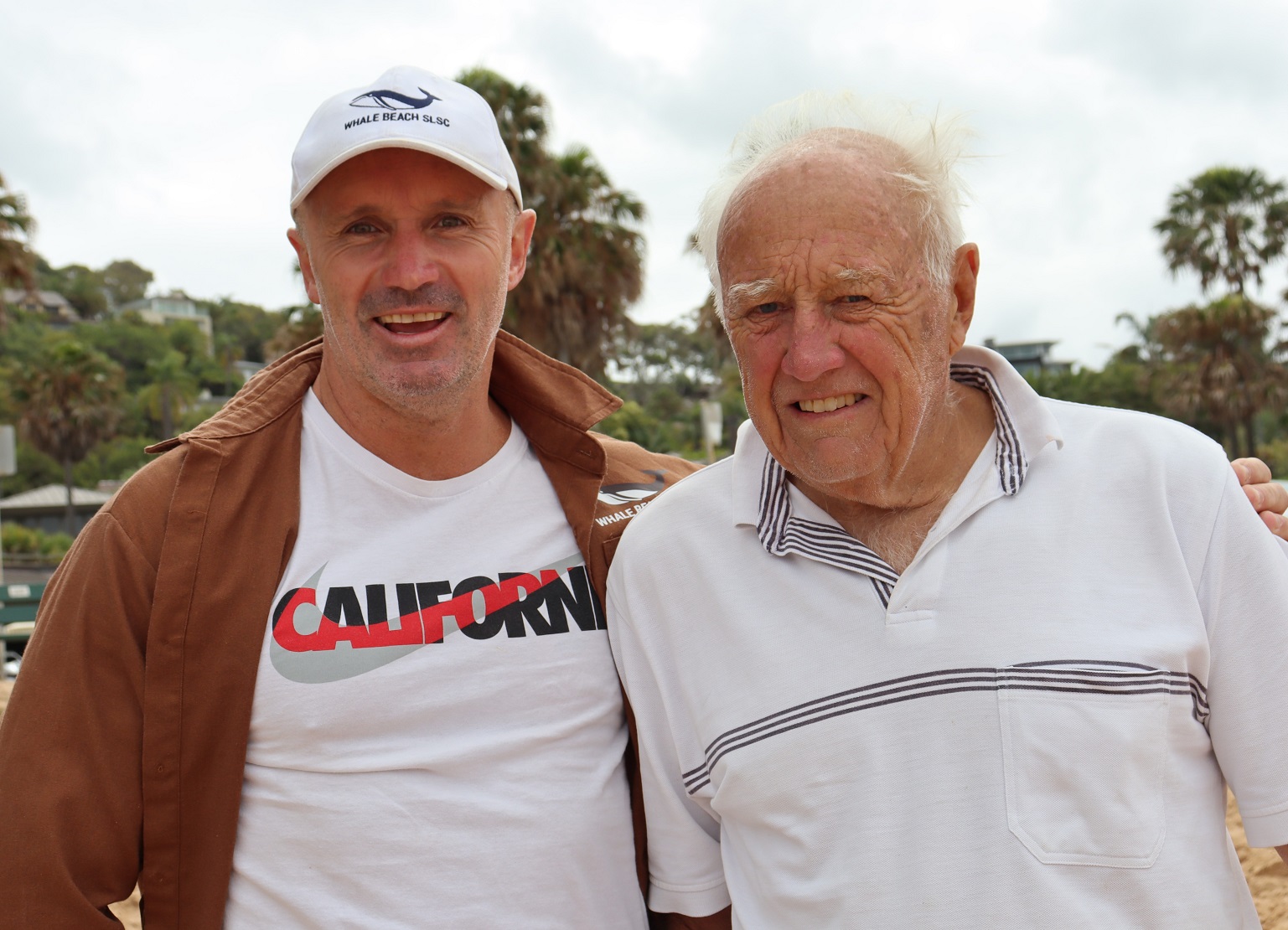 Philip Schmidt, former President of Whale Beach SLSC, and Brett at Palm Beach SLSC's Adrian Curlewis Masters Carnival in January 2026