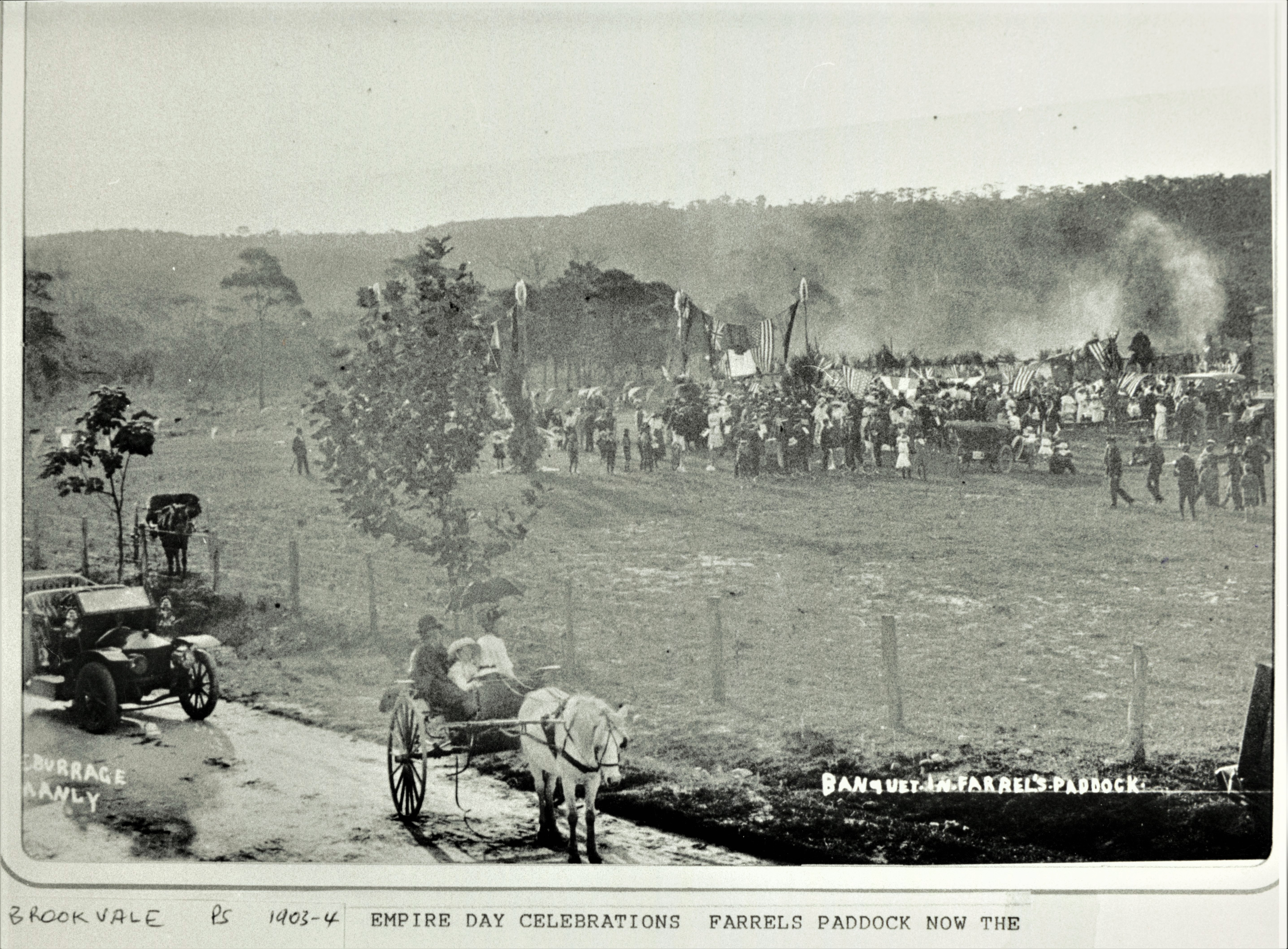 "Farrell’s Paddock" was the location of a public gathering in April 1910 to celebrate the extension of the tram line from Manly to the village of Brookvale, and had been used for other celebrations.