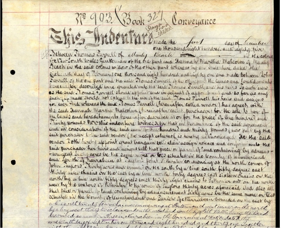 Following the acquisition of the land by Mary Jane Malcolm from James Farrell on 25 May 1886, their mother Mary Ann Farrell treated it as hers, no doubt thinking that it had belonged to her husband John Farrell. She gave it to Hannah Malcolm, and this was why Mary Jane Malcolm and her trustees took action in September 1903 to recover possession of the land.