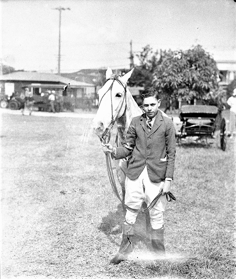At the recent Sydney Show Mr. P. B. McCauley, of Narrabeen (late of Gosford) won both 13.2 Pony Hunts with his grey pony, Sunray, and was 2nd in the 14.2 Pony Hunt, in this event jumping a hand out of his class and meeting such ponies as Thumbs Up (who jumped 7ft at the Show), and Blue Cam. Mr. McCauley also won both Pony Hunters events at the Manly and Warringah Shire Show the week before. Miss Eileen, daughter of Mr. McCauley, was awarded the red ribbon at Sydney Show for girl rider under 13 years, in which class there were 25 competitors. A CHAMPION PONY. (1925, April 23). The Gosford Times and Wyong District Advocate (NSW : 1906 - 1954), p. 6. Retrieved from http://nla.gov.au/nla.news-article166836894