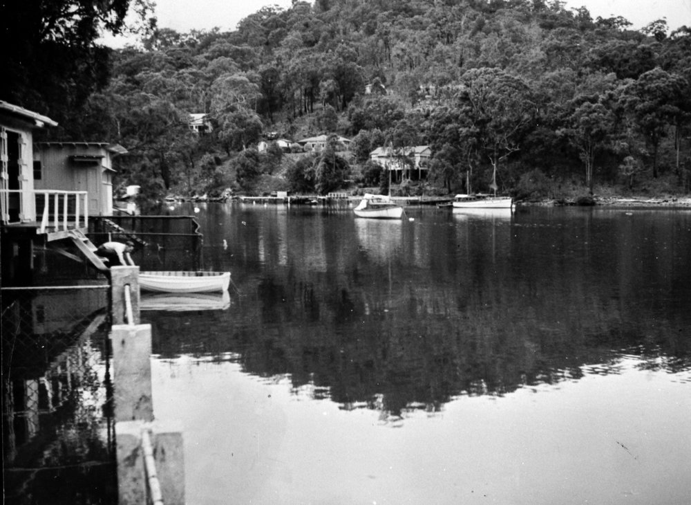 "Now we shall go up McCarr’s Creek to a little inlet called Brown’s Bay. George Brown and his family were the owners of the 41 acres estate "Waterside", a grant made in 1880. His house of weatherboard stood on the hillside, reached by a zig-zag path from the little stone jetty.