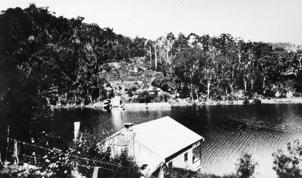 Just above one of the sandstone jetties previously mentioned are the remains of a wood hut, once the residence of Davy Walker in the ’eighties. Buffalo grass lawns, terraces and fruit trees testify to the amount of labour that was put into his “selection.’’ Half a century ago George Medlock, a farmer, also resided at McCarr’s Creek. On the shore opposite to Walker’s land up to the year 1913 stood the cosy weatherboard residence of the late George Brown, owner of “Waterside Estate,” consisting of forty one acres, a grant made in the year 1880.