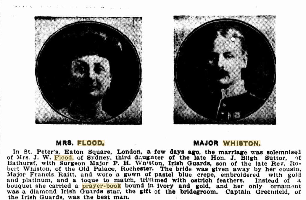 Marriage 12 OCT 1905 at Woollahra Presbyterian Church Woollahra NSW