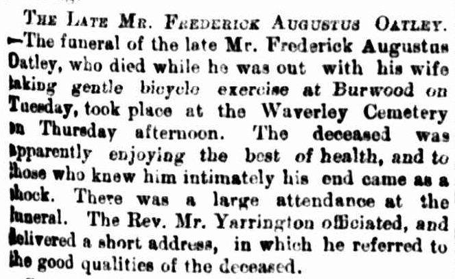 These Notices, where a record of William Oliver passing away is recorded, run shortly after the above advertisement. In 1882 he seems to have lost two of his sons in an accident in a boat in Pittwater, William and Henry being lost. Whether this occurred prior to the land sale and before he passed has not been able to be determined: