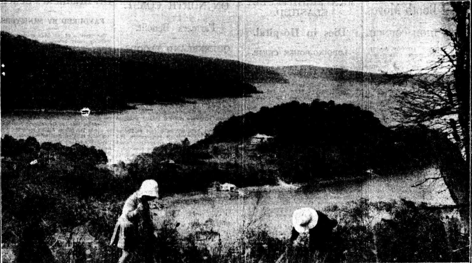 "Now we shall go up McCarr’s Creek to a little inlet called Brown’s Bay. George Brown and his family were the owners of the 41 acres estate "Waterside", a grant made in 1880. His house of weatherboard stood on the hillside, reached by a zig-zag path from the little stone jetty. The estate extended right to the head of the bay, where there is a gully, clad in various kinds of flora interesting to the botanist. Two old peach trees grew in front of the verandah, which was supported on pillars and at the head of the bay, passion-fruit vines grew over the rocks and trees. A track from Church Point led to it and on the way round exquisite glimpses of the creek were obtained through the gum-trees. I often stayed with the Browns at this old house and in the years 1909-10, it was a sequested spot, quite isolated even from the few inhabitants of Church Point.