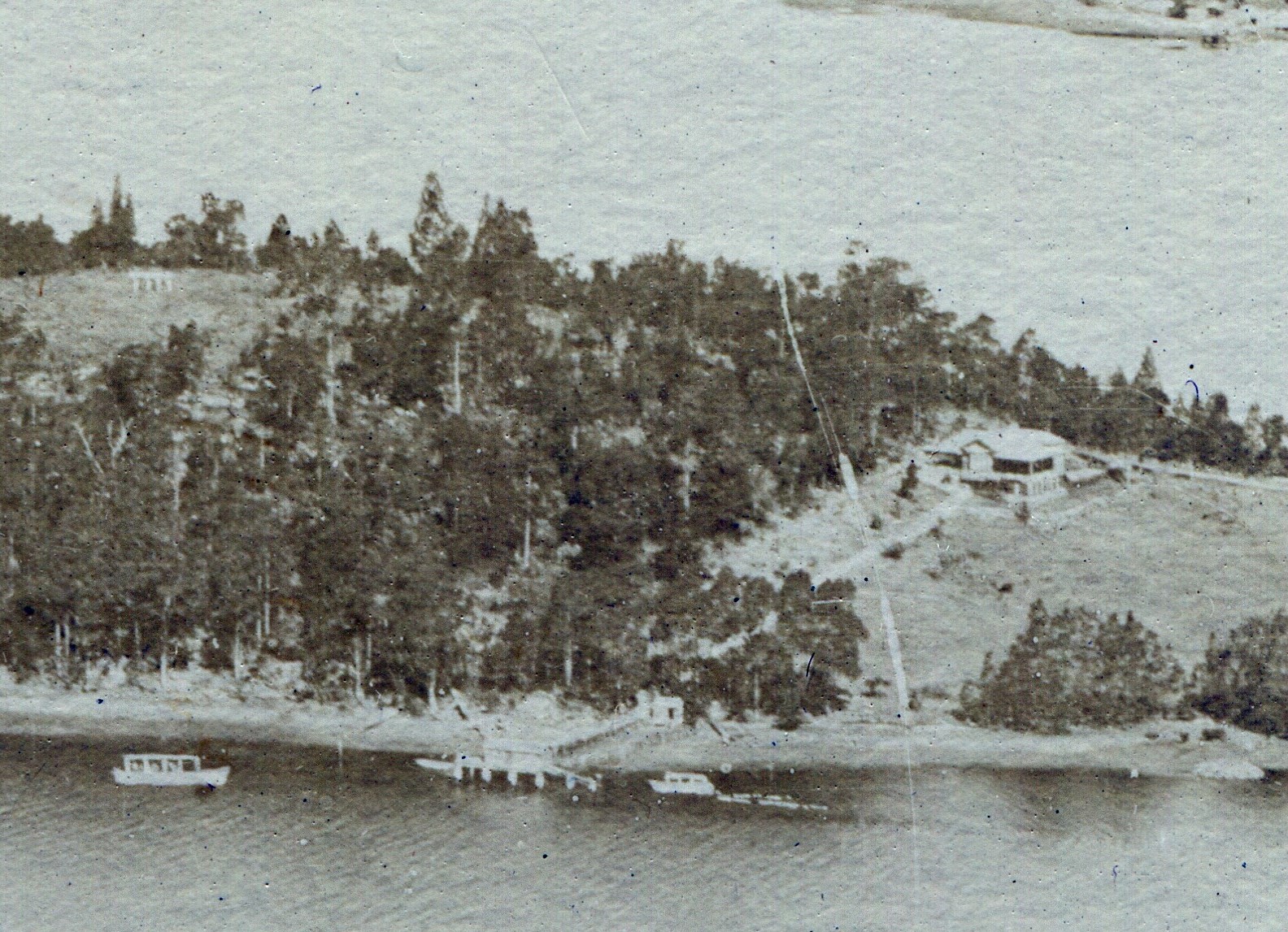 Closer examination of the photos atop this page shows the tree that has fallen into the bay at the head of the peninsula is in the same place and of the same size, so the 'improvements' shown in the structure in both photographs would date from between February 1888 and September 1888.
