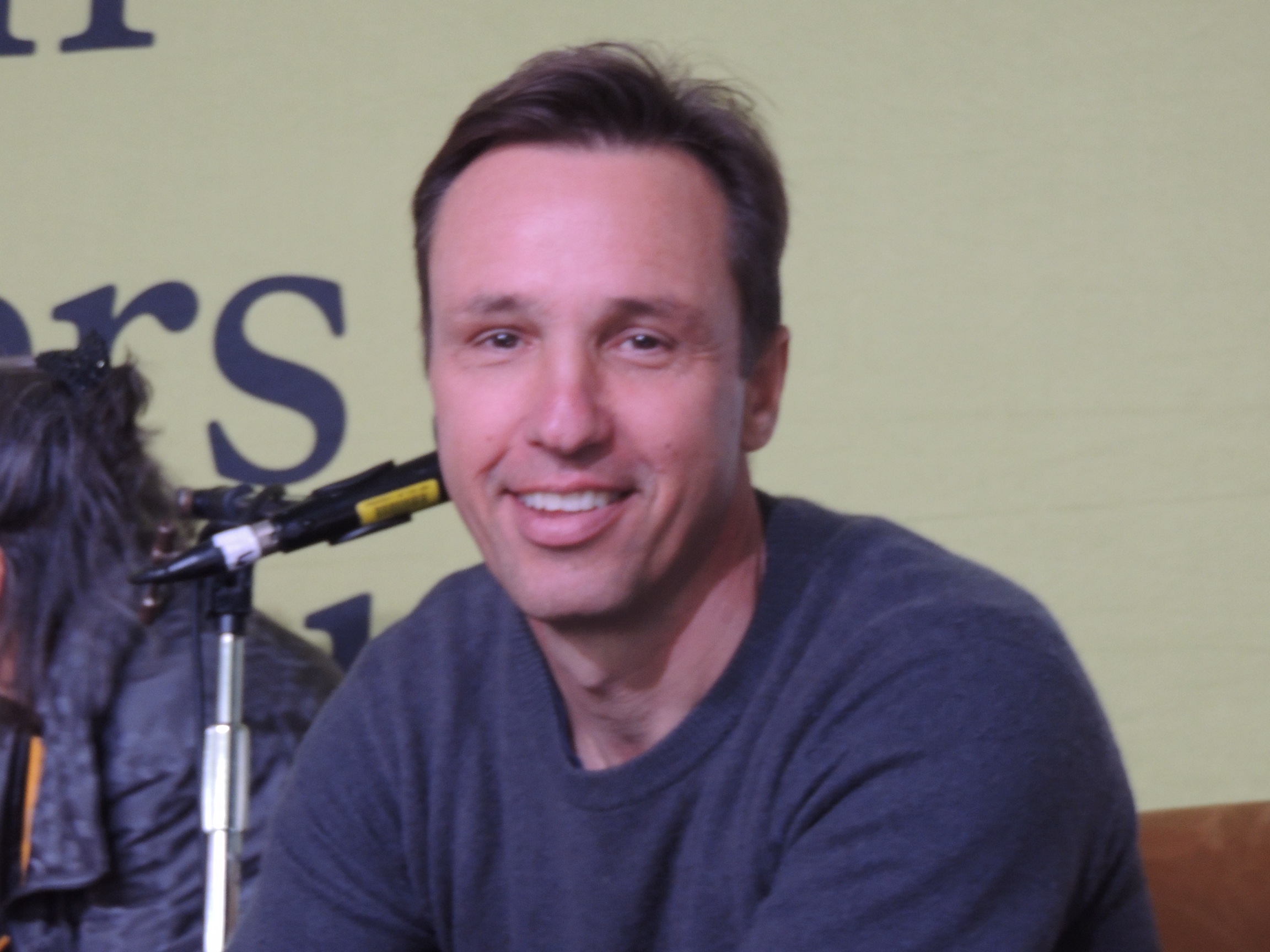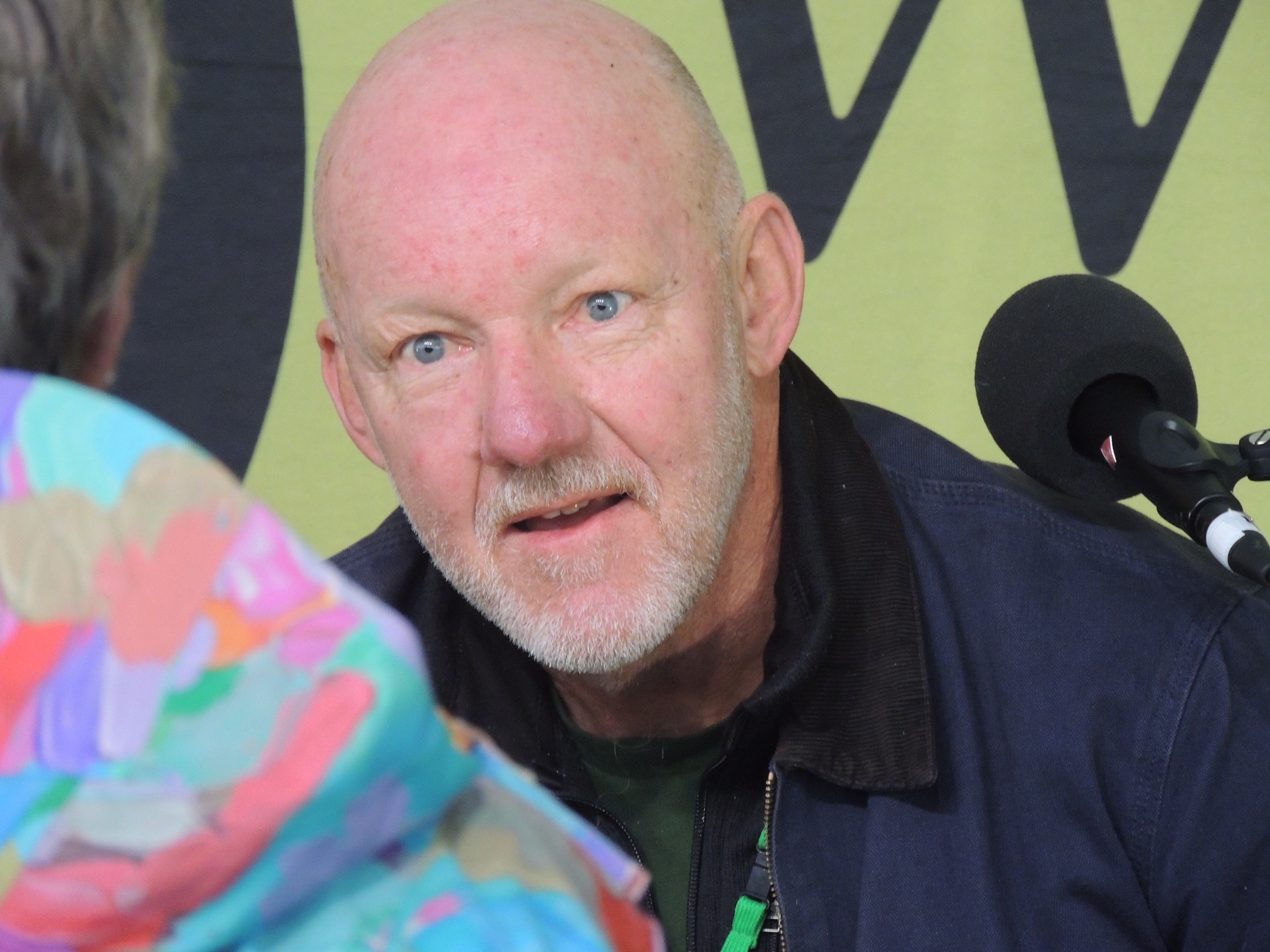 Moving between marquees now means slushing through mud to Memoir: My Story. Robert Dessaix, Hannah Kent and Markus Zusak are in conversation with Ashley Hay. The mix of these personalities is scintillating. Markus, who 20 years ago stunned the world with his novel The Book Thief, has written a memoir, Three Wild Dogs. Pivoting between love and chaos, he describes the effects these pets have on his family life.