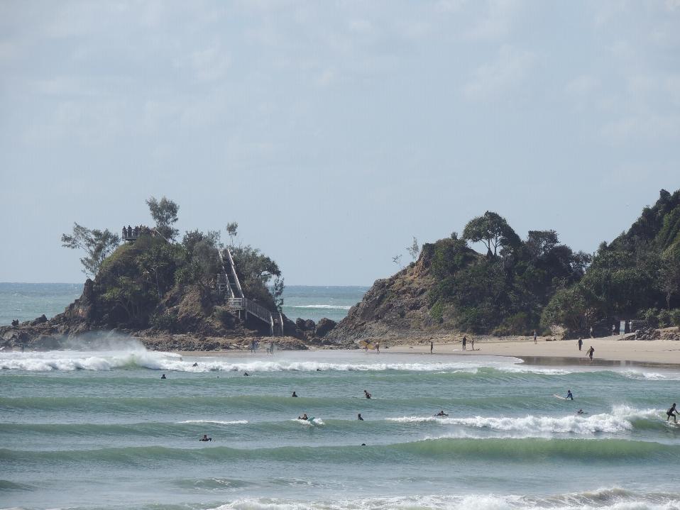 Near the beach just before sunset is the place to absorb the spirit of Byron Bay. Following an east coast low, two-metre waves, breaking to perfection, have drawn more than a hundred board riders. Watching them is mesmerising as the sky turns tangerine over Mount Warning. Melodies of a singer set up with a keyboard on the grass, fill the air. At times he adds the eerie sounds of a didgeridoo and the flaring notes of a trumpet. A stunning prequel to the upcoming Byron Bay Writers Festival on 8-10 August.