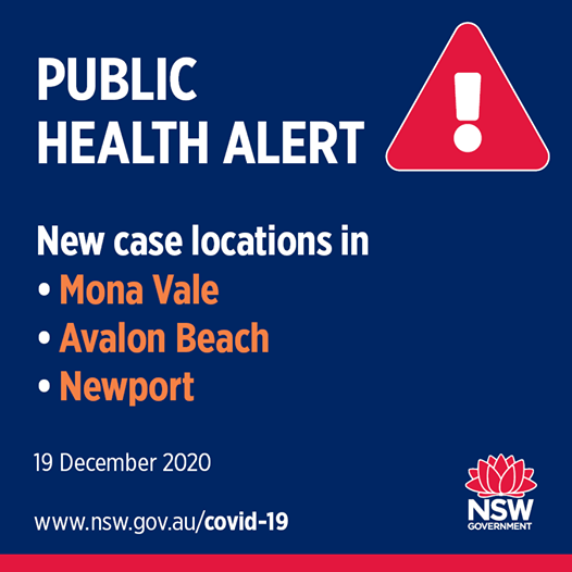 There is also updated advice in relation to Avalon RSL Beach Club. Anyone who attended the club at the following dates and times is considered a close contact and is required to get tested immediately and isolate for 14 days: Monday 14 December, 5pm to 10.30pm; Tuesday 15 December, 12pm to 5pm, and Wednesday 16 December, 4pm-12am (midnight).