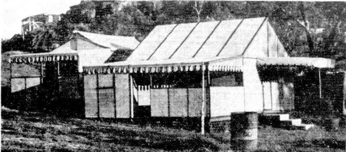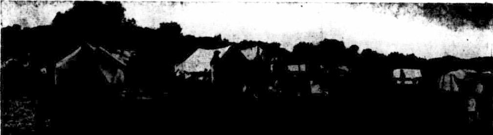 The Camp runs to 200 odd tents, housing as many as 2000 people. Tent names: "Welivere," "Kum Anava Chat," "Thistledo Us.'' form a pleasing complement to the more sedate "Aurora's," "Alcira's," "Kendall's," "Kendall Lodge's," and "Mandalay's" on the hill.