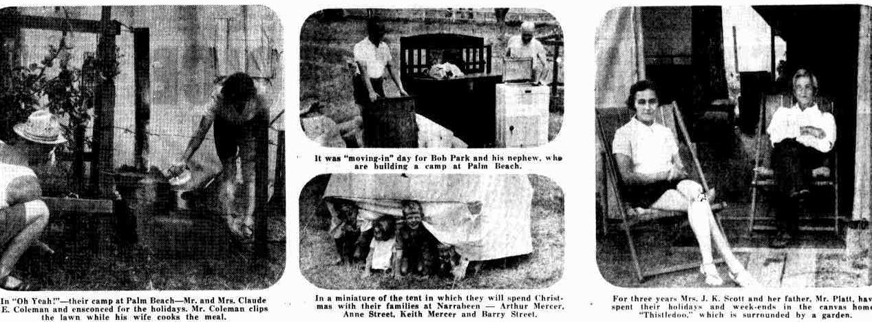 Motor camping, Palm Beach. (1930, January 10). Le Courrier Australien (Sydney, NSW : 1892 - 2011), p. 3. Retrieved from http://nla.gov.au/nla.news-article161727041