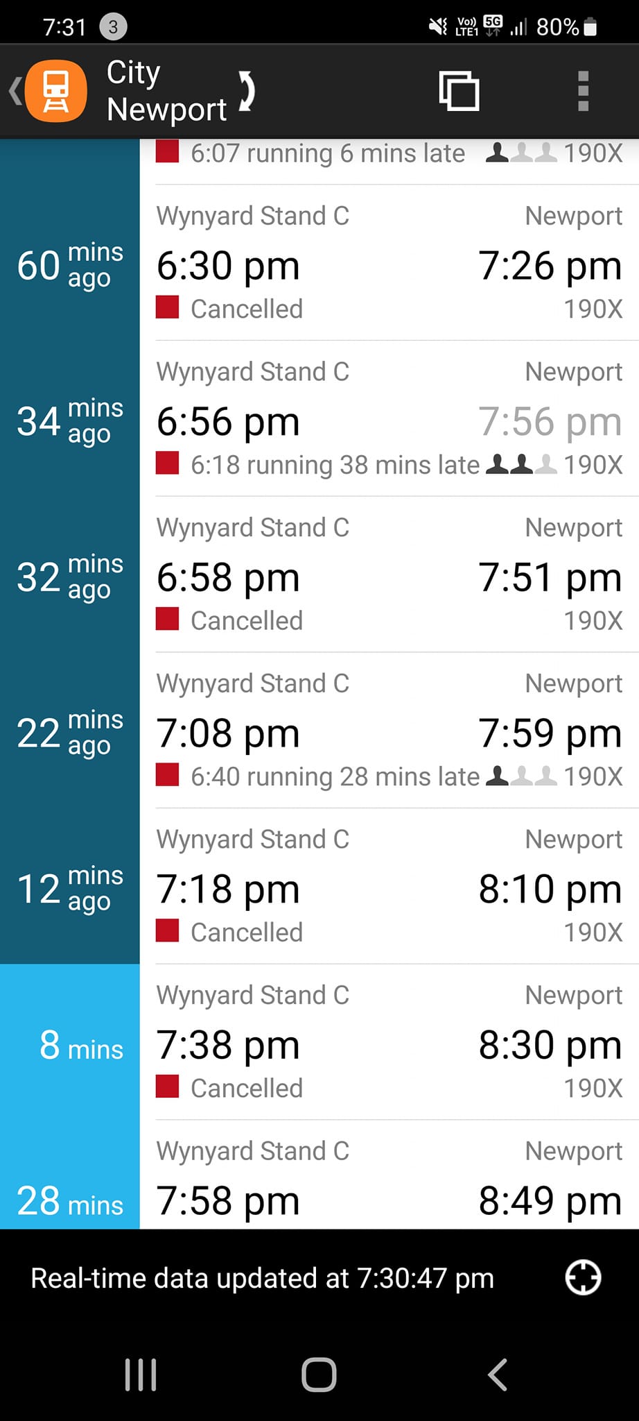 Commuters find out their bus, nor the next nor the next, is not coming via an app when they are standing at the bus stop waiting for it.