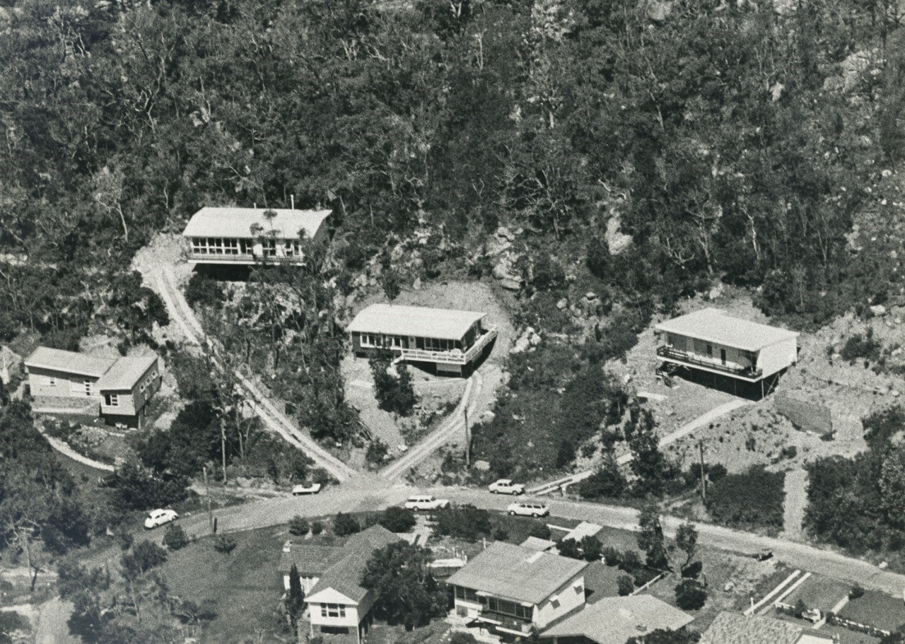 ''This first pic is of the home (middle) from where the 2nd pic was taken.Her dad was on a short flight down the coast and he diverted to get a pic of his house in Binburra. I’ve already sent the cropped version of no 2 to you (runs below) but without Robin on the verandah.'' - Geoff Searl OAM, ABHS President