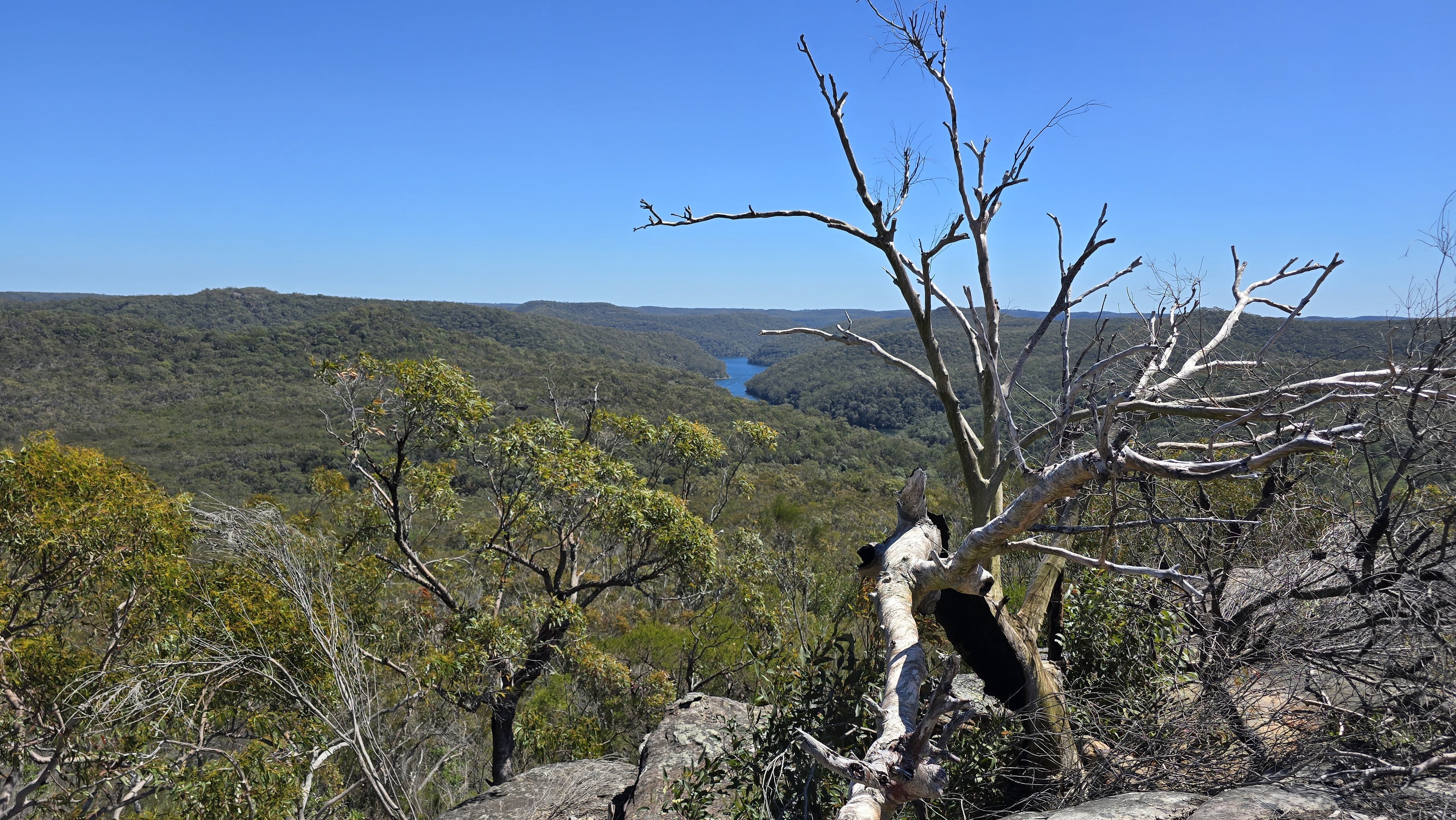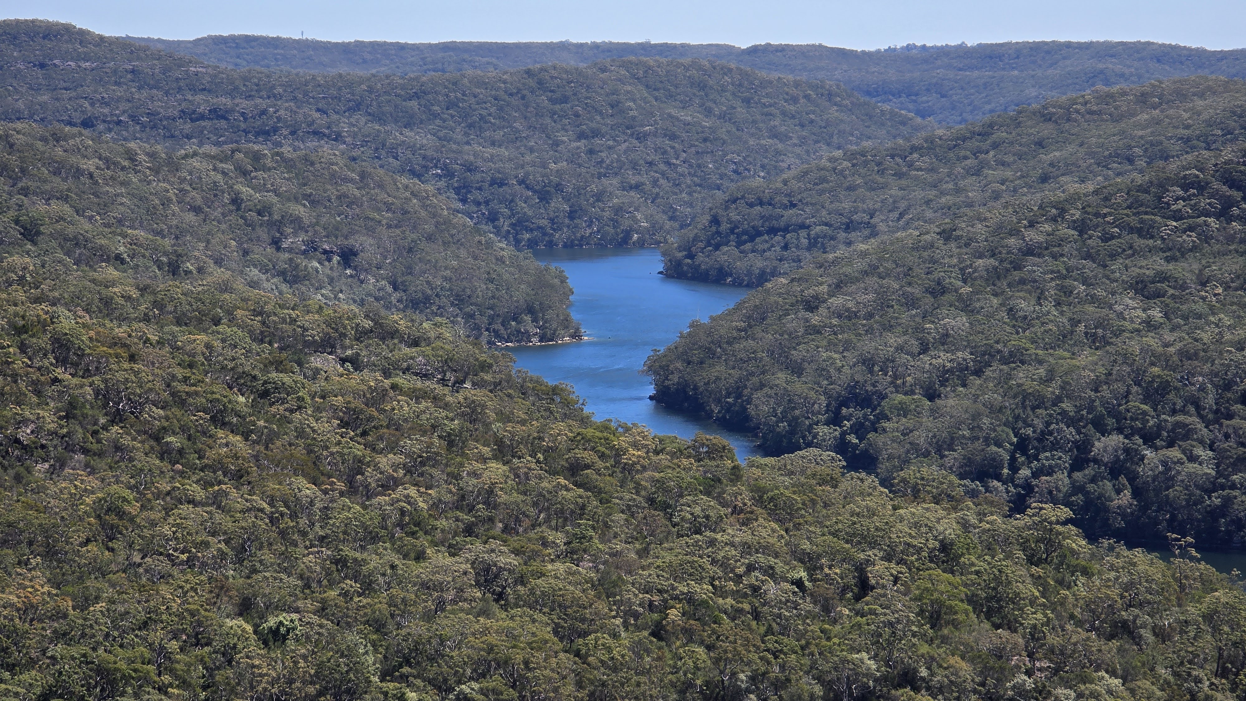 Centre trail traverses along a ridge off McCarrs Creek Road near Terrey Hills, in Ku-ring-gai Chase National Park. The ‘trail’ along the ridge line provides scenic views over several waterways, including Coal and Candle Creek and Akuna Bay.
