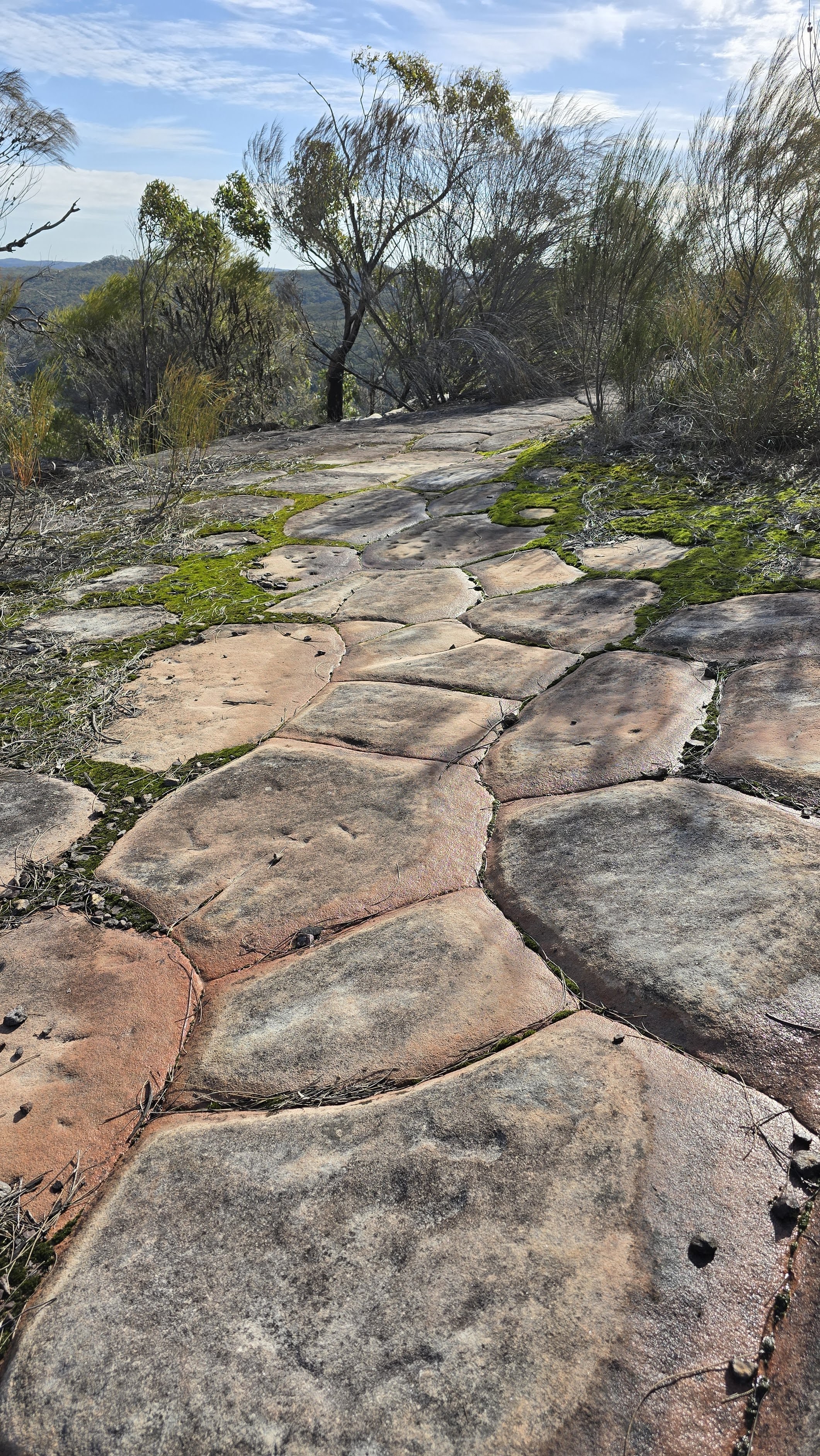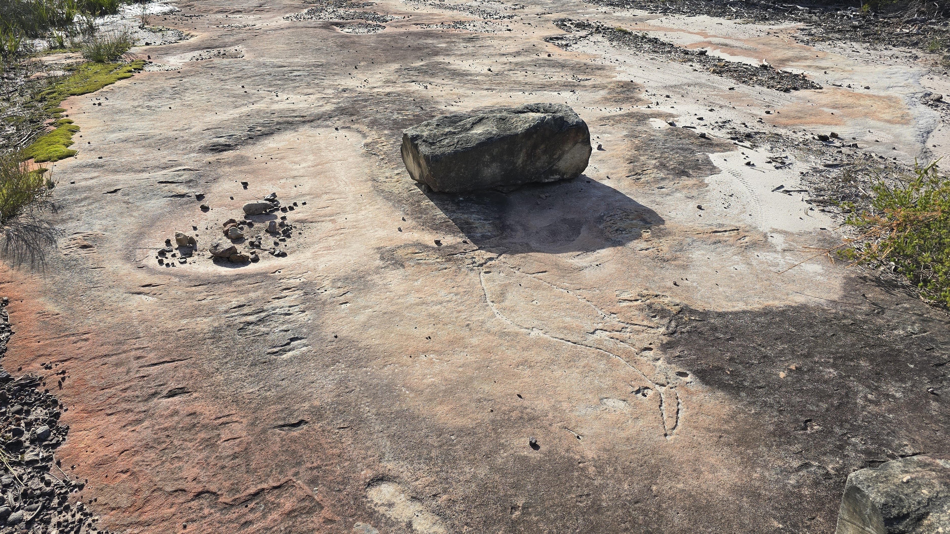 Climbing a small knoll, you’ll find a rock escarpment and tessellated pavements revealing faint engravings of footprints etched into the sandstone. As you ponder their significance, whisper an acknowledgement to the Aboriginal people of this country, before retracing your steps.