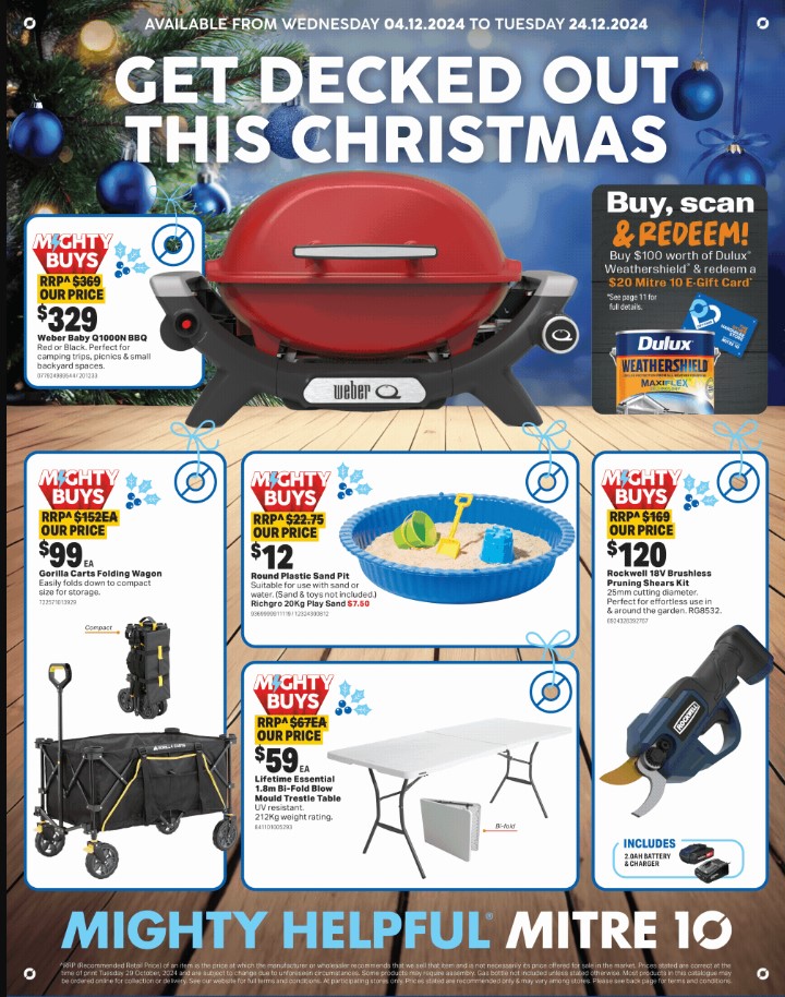 Johnson Brothers Mitre 10 stores are filled with everything you will need to get your home and garden visitor-ready, as well as great gift ideas for everyone and every budget. Just pop in and talk to their friendly trained staff about what is on your 'to do' list for this year and do it all a bit at a time instead of all at once so your loved ones get the best of you, not what's left of you after all those preparations - that's what they really want.