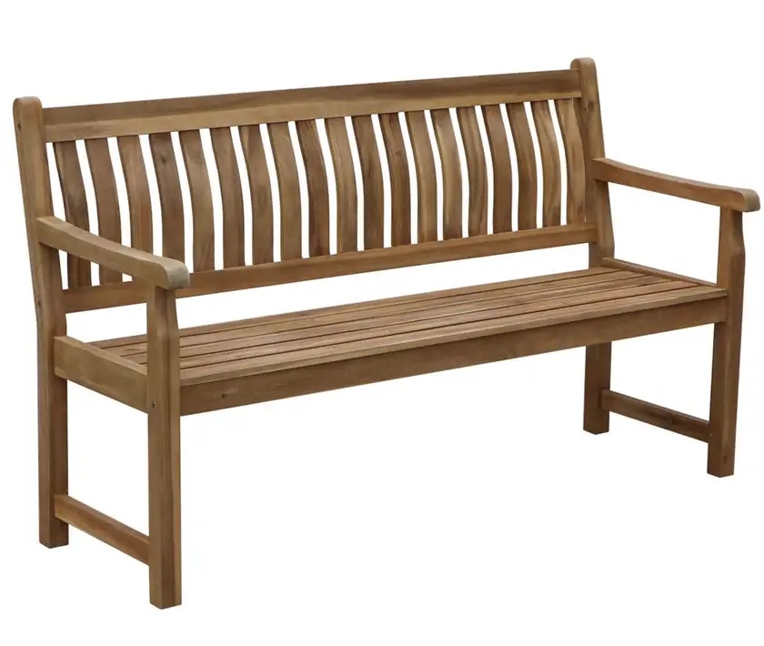 Includes: W1500 x D600 x H890mm; Weight capacity: 200kg; Requires assembly - easy to install. Features FSC acacia timber. Designed with a curved back for comfort