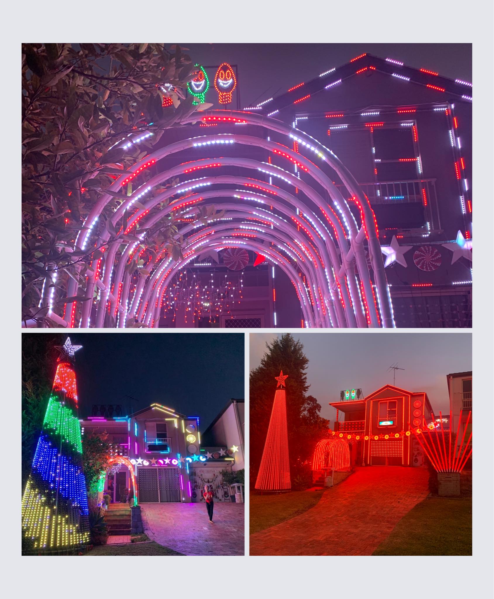 36 Childs Circuit Belrose has been switched on - take a drive by and see the UNIQUE Synchronised Christmas Light show - handcrafted by Colin Cooley -including arches, stars and a 5 metre MEGA tree with 3600 smart LEDS, make sure you tune your radio into 99.5 on the FM dial and look out for Santa in the top window.