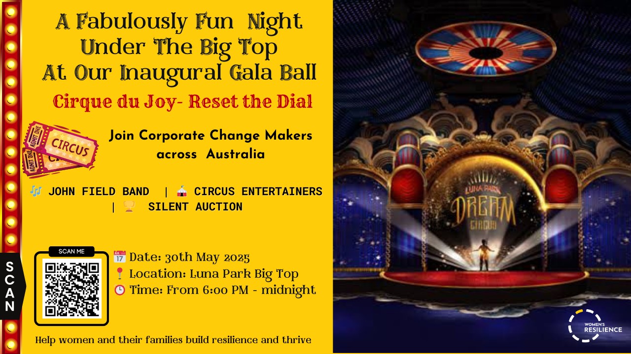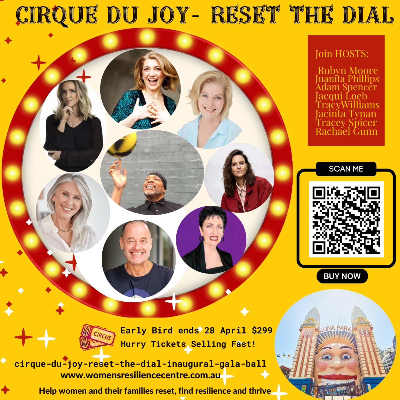 The Women’s Resilience Centre is proud to announce Cirque Du Joy – Reset the Dial, during Vivid Sydney for our most important annual fundraising event, taking place this year to support our mission of breaking the devastating cycle of domestic abuse in Australia. With only 1% government funding, we rely entirely on the goodwill of the community and corporate Australia to sustain our work and provide essential support services for women and families recovering from trauma.
