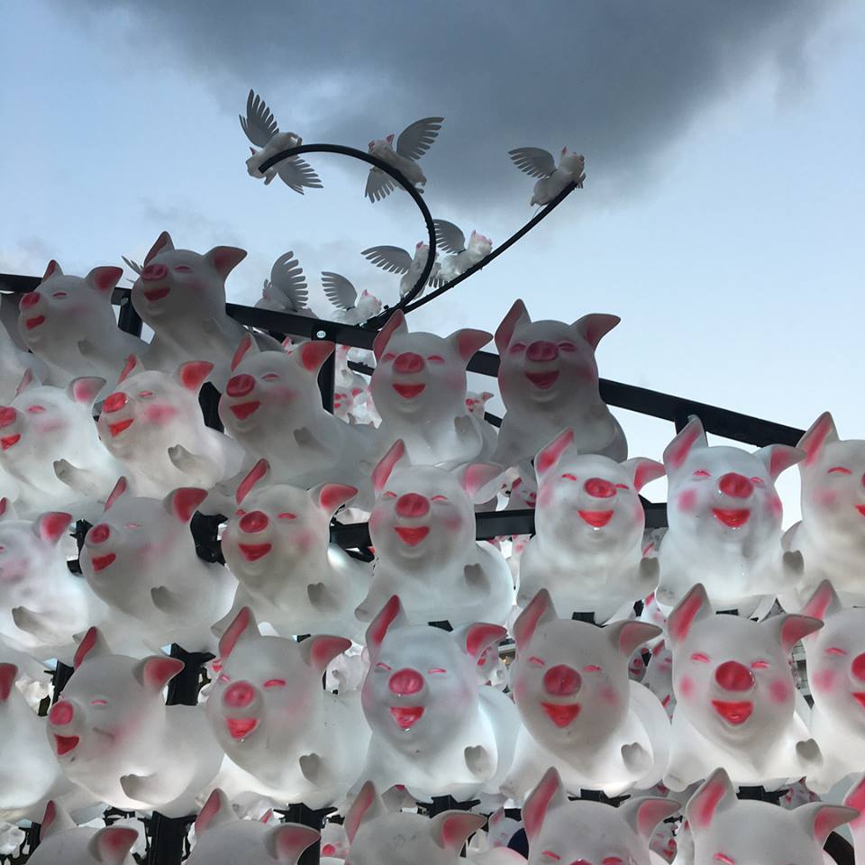 The lantern consists of a six-metre high silicone spiral of 1,000 pigs, lit by LED lights, hat kids can touch and play with.