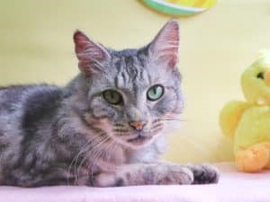 Cinnamon is a very gentle affectionate cat. He is sweet and smoochy and he loves to climb onto your shoulders. He came in as a stray via another vet clinic. He had very itchy skin and it has taken time to get it under control at the vets. He also has had a dental with 5 extractions. Cinnamon is looking for a home where people understand he may have to be on a special diet for the rest of him life and potentially some sort of medication. He has a fluffy coat that needs brushing and he weighs 4.5kg. All our cats come desexed, wormed, F3 vaccinated, FIV/FeLV tested and microchipped. His adoption fee is $220.