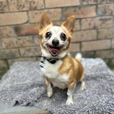 Dottie is a very anxious girl who is finding everything new. She is trying hard to learn and follow some of her doggy pals. She is very affectionate and clingy with people she is comfortable with and has separation anxiety. Dottie is good with other small dogs but needs an experienced handler with the time to introduce her to things slowly. It is unlikely she has been walked on a lead before. She has a short coat and weighs 7.2kg. She is looking for a home based worker with house and garden who has experience with separation anxiety issues. All our dogs come desexed, C5 vaccinated, heartworm free and microchipped. Also included for the love and health of our dogs is a free Health and Wellness Voucher with our DoggieRescue Vet. Her adoption fee is $700.