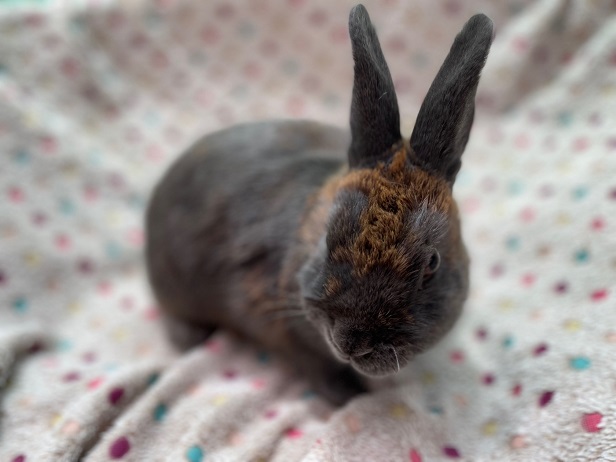 Marie, an adult Dwarf X is a sweet easy to handle girl who came to our clinic as a stray. She is desexed, vaccinated and chipped. She is about 4 years and weighs 2.5kg. She is happy to be a single bunny but has had mates in the past. Her adoption fee is $150. For further details call DoggieRescue on 9486 3133 or email Monika@DoggieRescue.com. RON R251000024