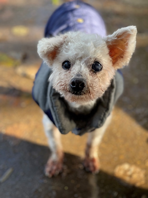 Sweetie is a very gentle quiet easy dog. She came from the pound in a matted state, dry crusty skin and a partially bald tail. She has limited vision due to scarring from old ulcers left untreated. Sweetie is social with other dogs and so gentle with people. She is so well behaved on the grooming table! Sweetie is looking for a quiet home life for her remaining years. She has a non-shedding coat and weighs 4.9kg.