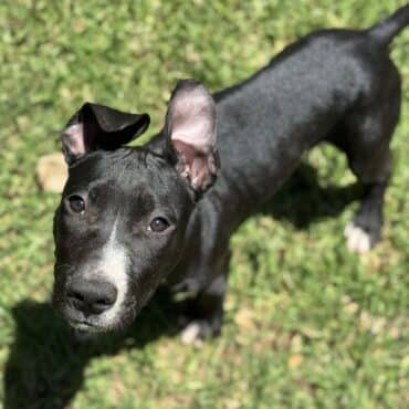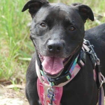 Dobby is a friendly happy energetic boy. He is slightly smaller than an English Staffy. He is social with dogs around his size and energy level. Out walking he mostly walks on loose lead. He can lunge playfully at some dogs, and he walks at a good pace. He enjoys being patted and really enjoys back rubs. He has a smooth coat and weighs 15.6kg. He comes desexed , vaccinated, heartworm free and chipped. His adoption cost is $400.