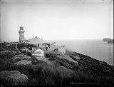 As early as 1855 a basket was reported to be raised to shine a light for all those who travelled around the sometimes treacherous headland of Barrenjoey. This device came from a wooden hut erected as early as 1843 on the headland when the Broken Bay Customs Station was opened. From here ships were monitored as they entered or left the port of Pittwater.