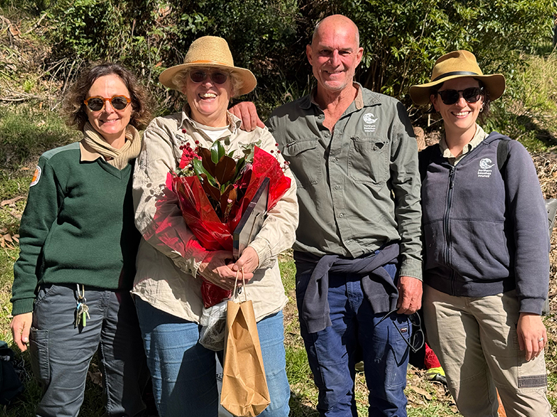 Bettina Tuerk-Rochl (National Parks and Wildlife) praised Lisa’s long-standing leadership and deep knowledge of the local ecosystem, while Michael Kneipp, (NB Council), recalled just how overgrown the area once was with lantana before Lisa’s intervention.