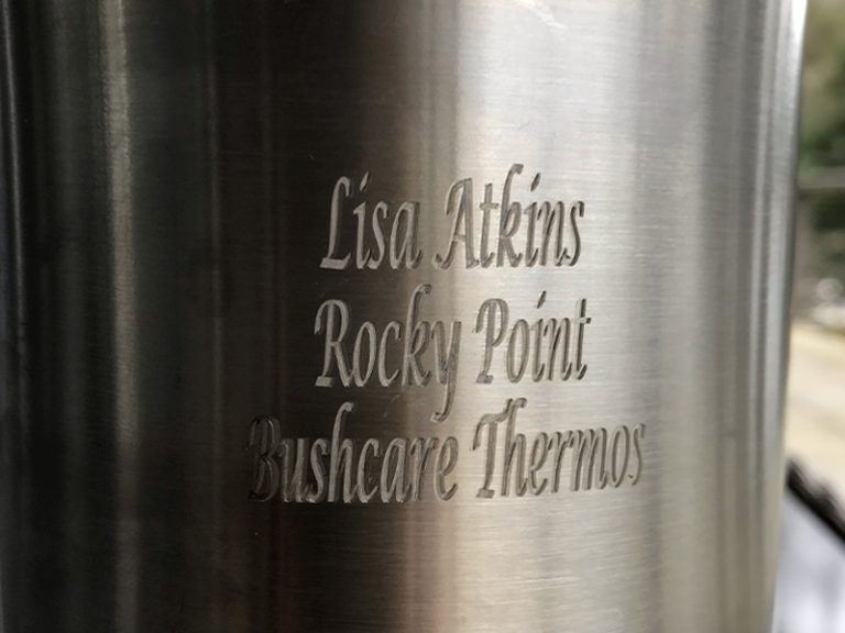 In recognition of her service, Lisa was presented with a Certificate of Appreciation, a bouquet of native flowers, Burrawang seedlings to plant in her own time, and a custom-engraved thermos — a nod to her reputation for never arriving at a bushcare day without a strong brew and something tasty to share.