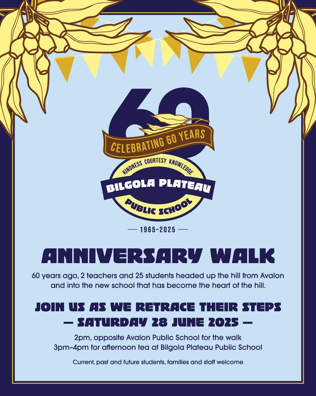 On Saturday 28 June, 2025 - 60 years to the day - around 200 Students, all the Teachers and Staff members, parents and families past, present and future, retraced their steps in an Anniversary Walk.