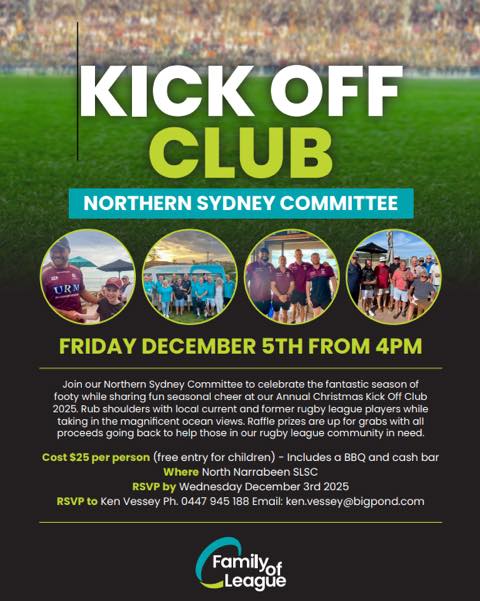 Join the Family of League Northern Sydney Committee to celebrate a fantastic season of footy and share in some festive fun at their Annual Christmas Kick-Off Club!- When: Friday, 5th December from 4pm