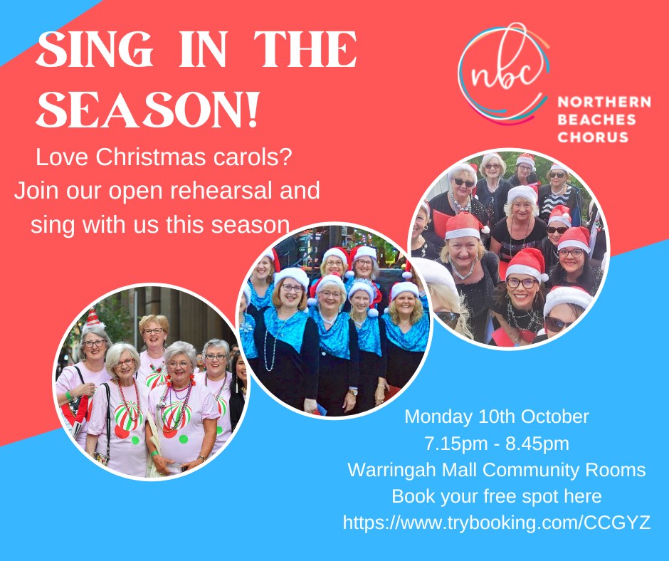 Wanted! 10 Women Who Love to Sing (or would love to learn).Join us to Sing in the Season! Learn at least 2 Christmas Carols in joyful 4- part a cappella and experience the thrill of bringing the joy of Christmas to the Northern Beaches throughout December.