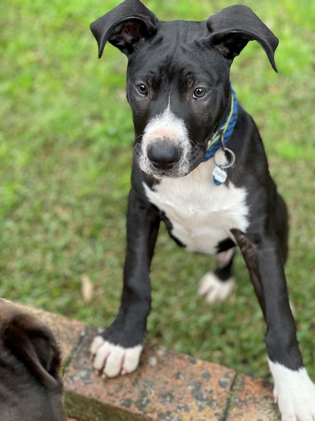 Marley is a friendly happy pup who loves to play with other young dogs. He is affectionate with people however he has a slight disability that does not affect his life span. As he is growing he seems to manage his balance better and it does not interfere with his doggy play. Marley is also child friendly and would suit 12+yo. Our trainer says: Lovely friendly boy. A little nervous/jumpy with new things. Better in an adult or older child environment only because he falls more when gets excited or worried."