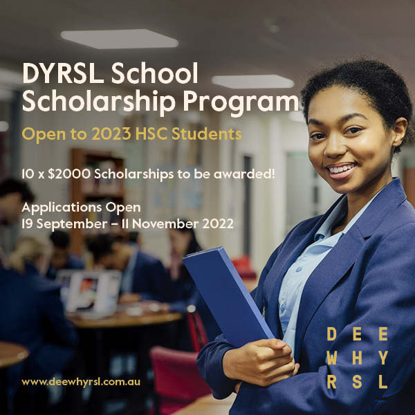 Dee Why RSL is pleased to announce the 2023 School Scholarship Program, open to local students going into year 12 for the 2023 year of study.