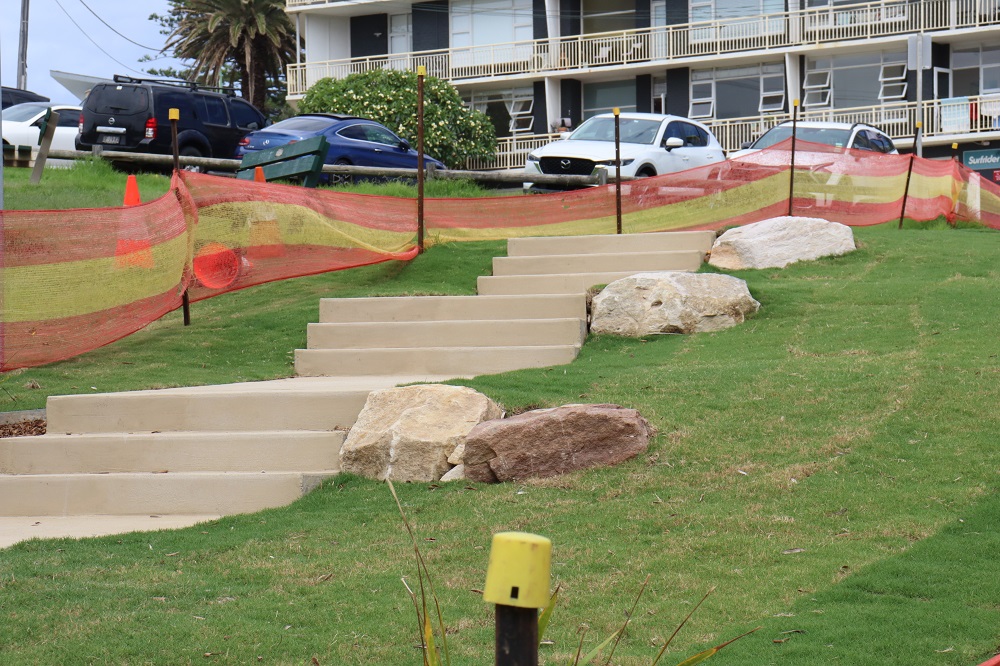 ''Council is currently installing two new pedestrian paths with landscaping, replacing informal tracks to enhance safety, reduce erosion and improve visual amenity. These works respond to community requests and align with the Avalon Beach Place Plan 2022 and the Avalon Pedestrian Access and Mobility Plan 2017. The landscaping includes native garden beds, turfing and sandstone features to assist with drainage. Council is investigating opportunities for additional tree planting to further increase shade and keep the area cooler as part of its Tree Canopy Plan however it also needs to consider the public’s need for open spaces for picnics, small events and Surf Life Saving Club activities.