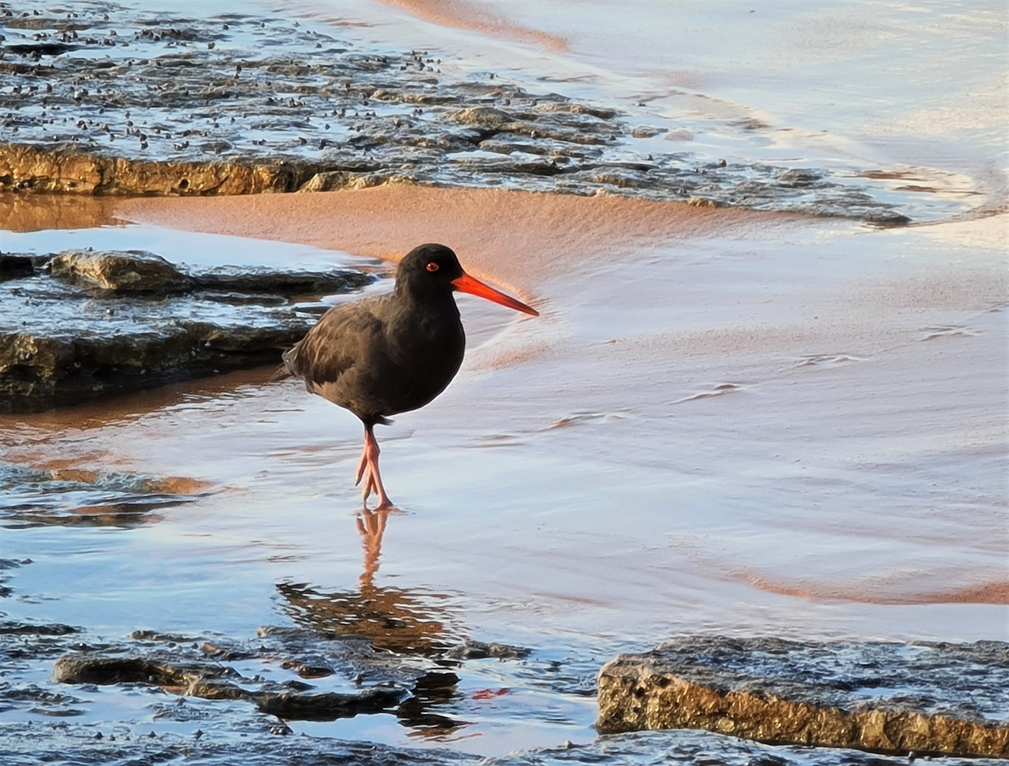 Sooty Oystercatcher on Turimetta Beach - one of a pair that lives at Turimetta and North Narrabeen Rock Platform - photo by Joe Mills, April 7th, 2021