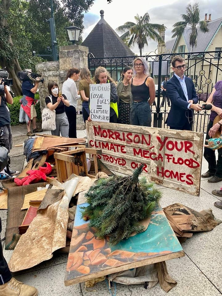 Since then the group has expanded their focus to those being impacted by floods and delivered ruined property from the Lismore floods to the Prime Ministers' residence in Sydney, Kirribilli House, on Monday March 21, 2022.