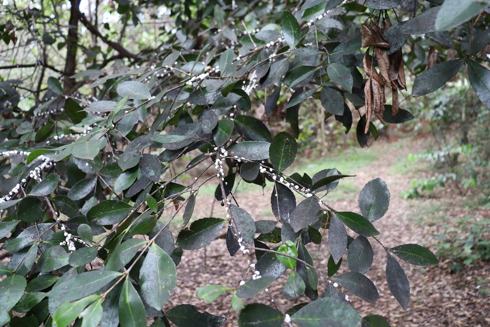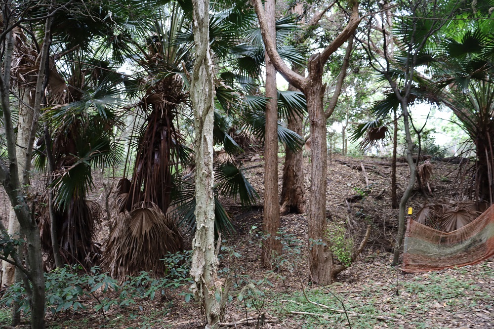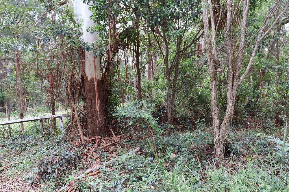 The northern side of the Reserve supports a Narrabeen Slopes community dominated by Grey Ironbark (Eucalyptus paniculata), Grey Gum (E. punctata) and Turpentine (Syncarpia glomulifera). The low tree and shrub layer includes locally significant Guioa (Guioa semiglauca), Smooth Mock Olive (Notelaea venosa), Yellow Pittosporum (Pittosporum revolutum), Native Peach (Trema aspera), Bottlebrush (Callistemon spp.). The groundcover and vine layer includes Blue Flax Lily (Dianella caerulea), Native Geranium (Geranium solanderi), Native Raspberry (Rubus spp), Kidney Weed (Dichondra repens) and Centella asiatica. The southern slope supports a diverse native plant community with a modified understorey. The modified gully floor supports a Swamp Oak Woodland community dominated by Swamp Oak (Casuarina glauca) with remnant Cabbage-tree Palms (Livistona australis) and Prickly-leaved Paperbark (Melaleuca stypheliodes).