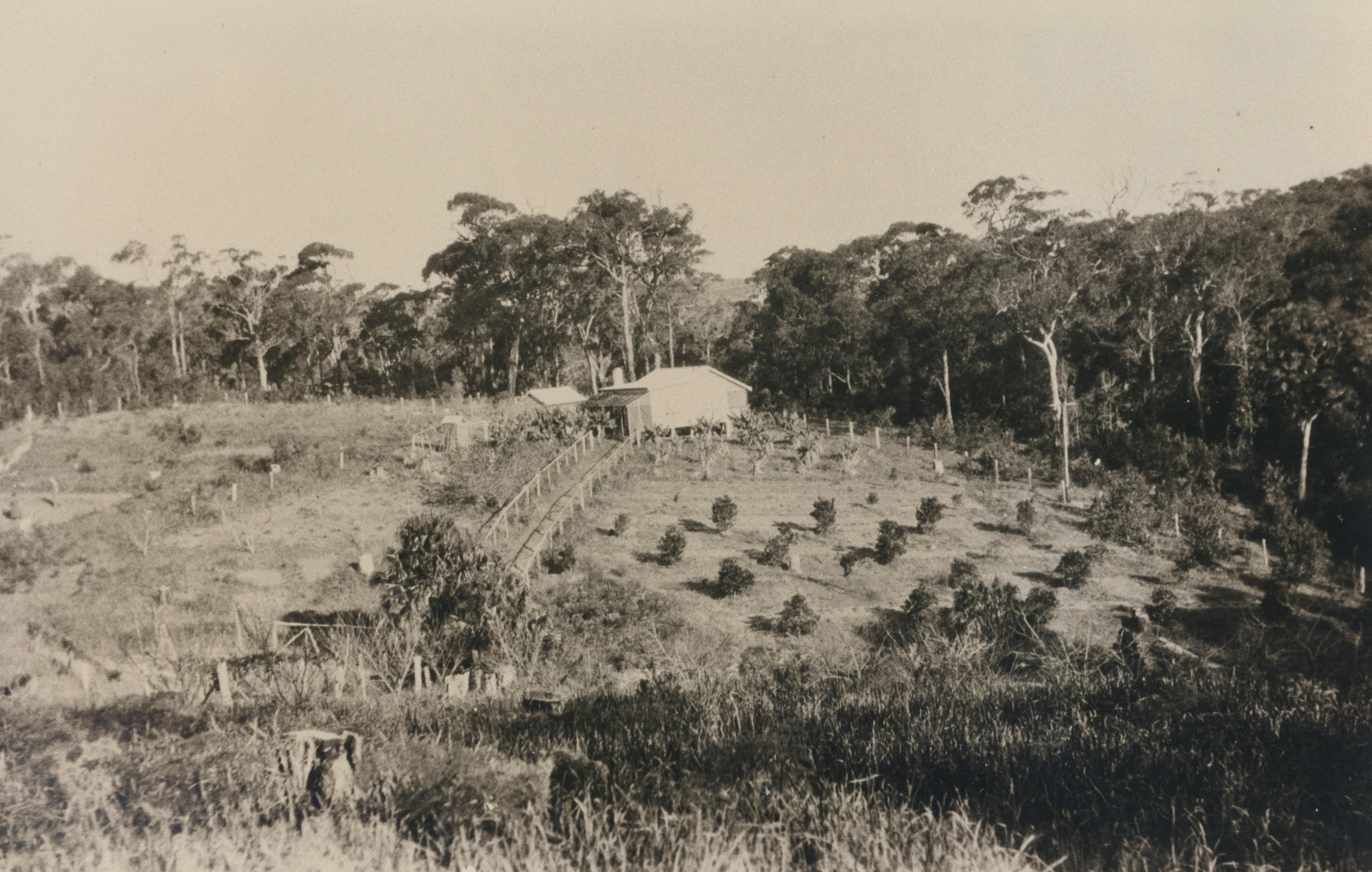 Geoff Searl OAM, President of the Avalon Beach Historical Society sent in a great shot of the Sharp’s farm in the Crescent which allows us to see the orchard planted by them surrounded by the trees and bush.