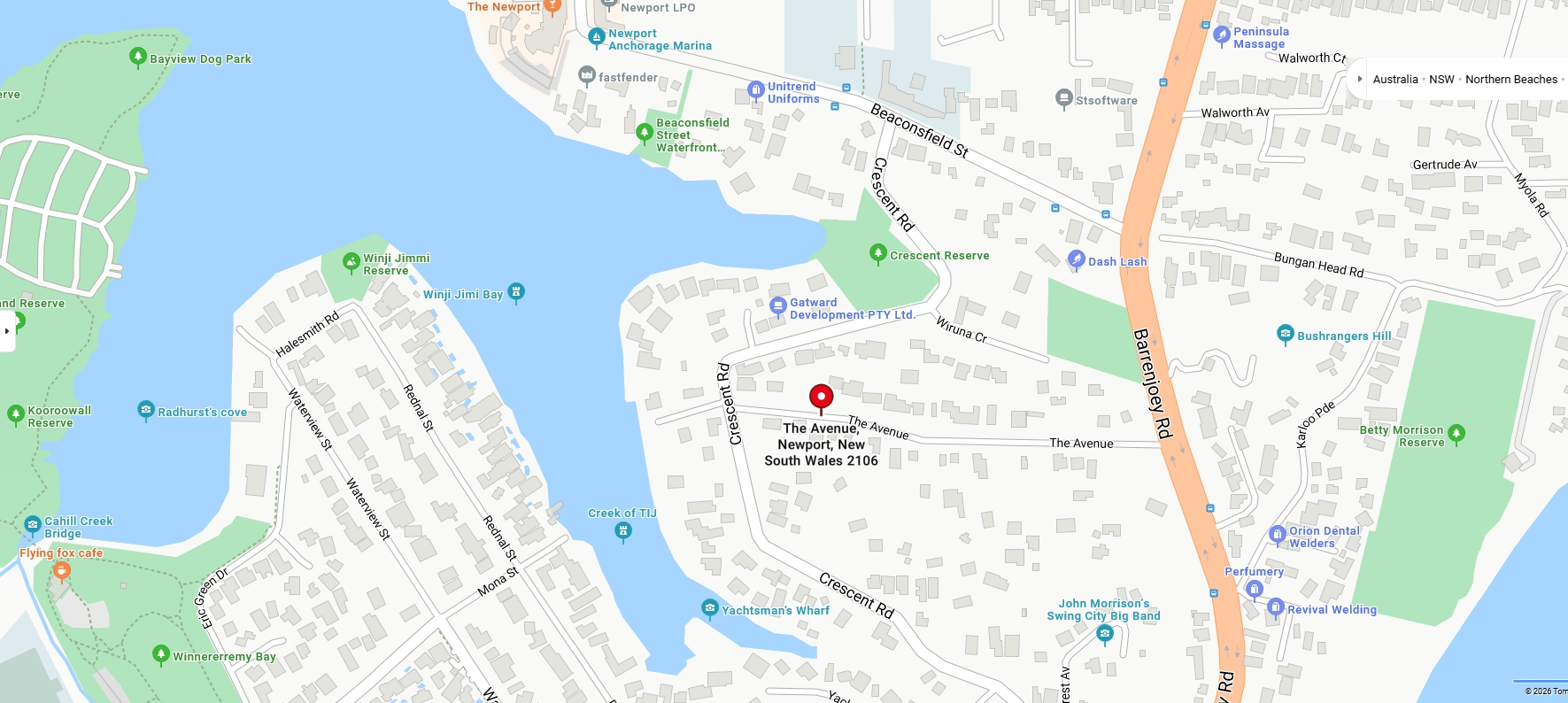 Crescent Reserve is a foreshore Reserve located west of and abutting Crescent Road in Newport. The Reserve is contained in a gully that empties into a cove of southern Pittwater. It occupies 1.0ha and has a play area in the eastern portion. Sydney Water has an access road and Pumping Station (Lot 1 in DP 597102).