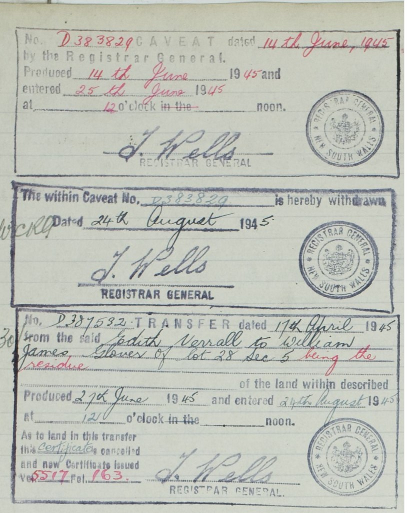 Edith Verrall sells the remaining acreage at Newport to William James Glover in 1945: