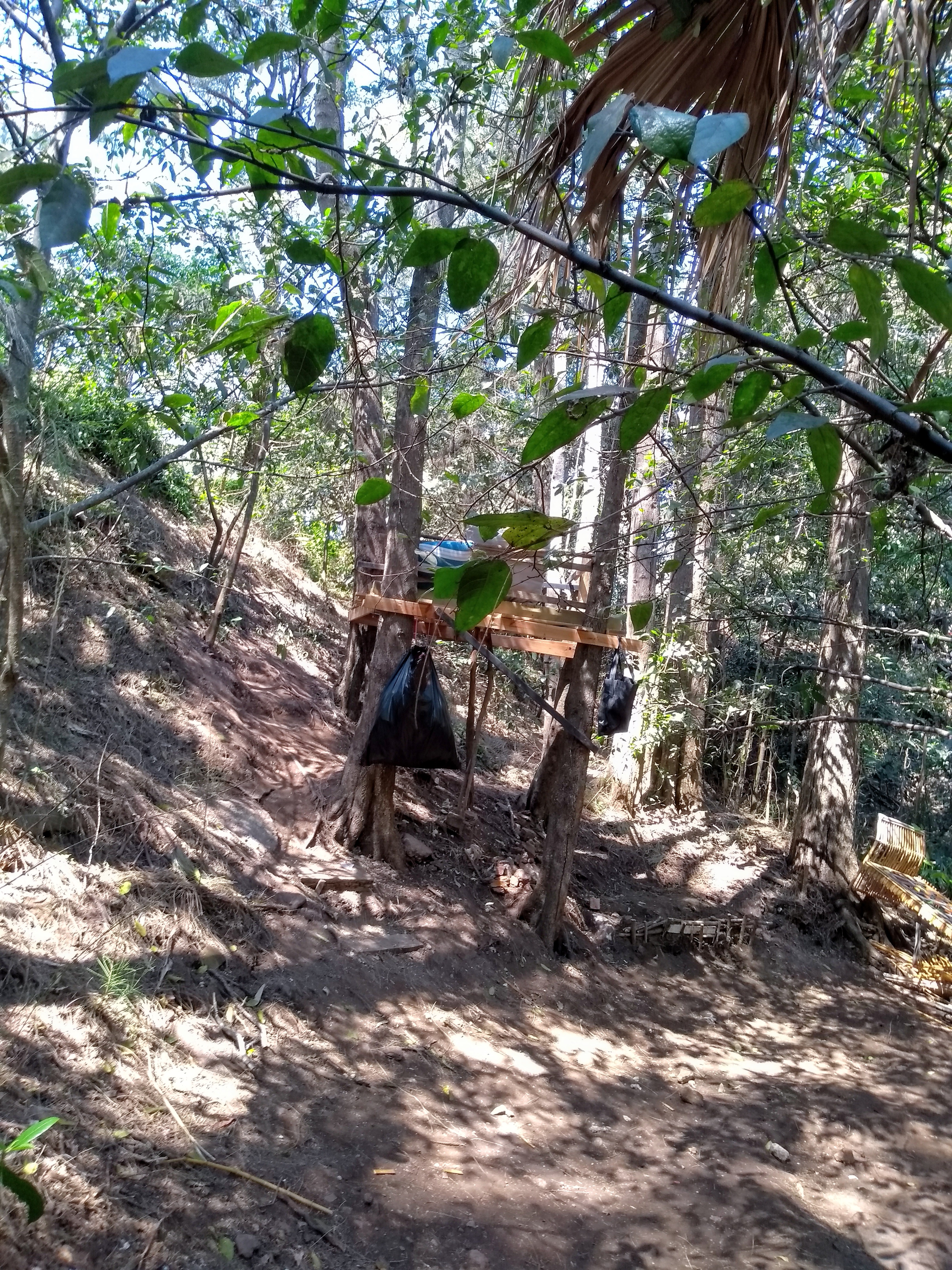 In the space of the last couple of weeks trail bike builders have removed barriers erected by council staff last year, after a similar incident damaged and felled shrubs and trees in order to create several bike trails, erected a den and tree house, excavated soil at creek level to create jumping mounds, installed a garden bench, foldable chairs, and left the tools used to destroy this reserve, namely wheelbarrows, a bush saw, brooms, shovels, chainsaw and general rubbish.