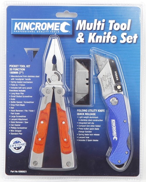 Kincrome Knife and Multi-Tool Set: $29.00 Bullant Am/FmEarmuff Radio: $25.00 Includes 20 function pocket tool and folding utility knife with 5 spare blades 20dB+ protection. 2 x AA batteries (Sold separately.)
