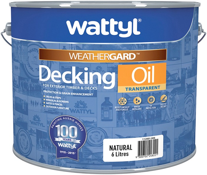 Wattyl Weathergard Decking Oil: $49.90 - 6L. Natural. Enhances the timber’s natural grain