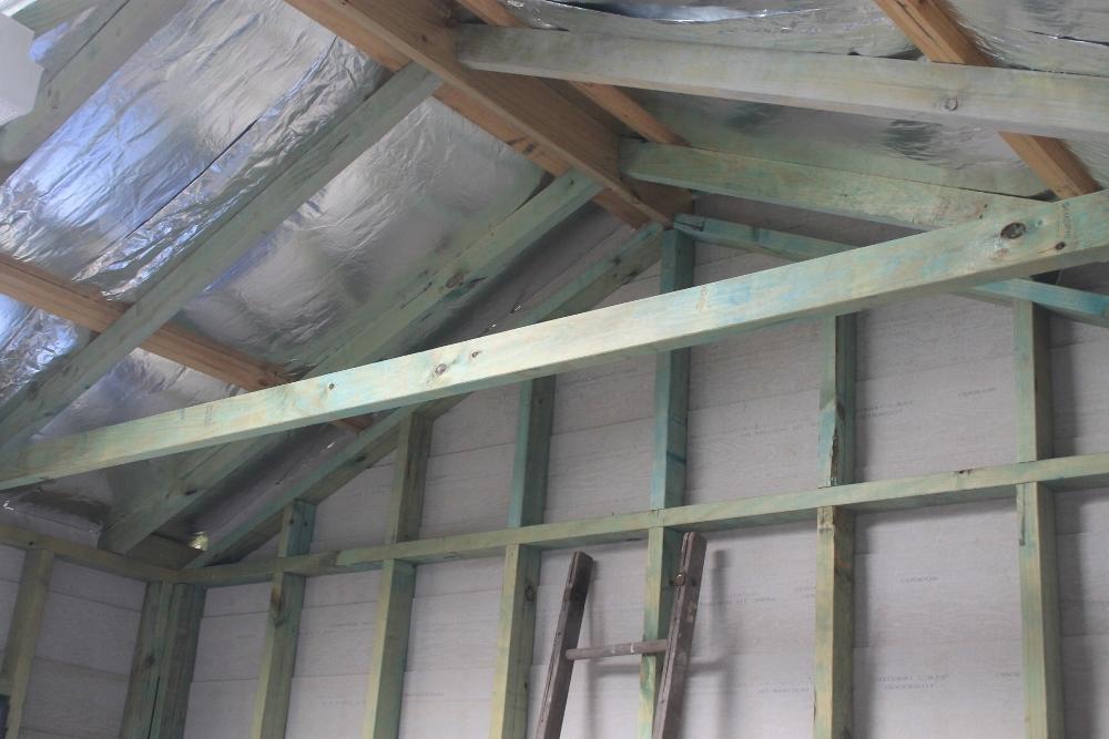 Roof framing - interior view - this shows the sisilation paper - which will form part of No.3.