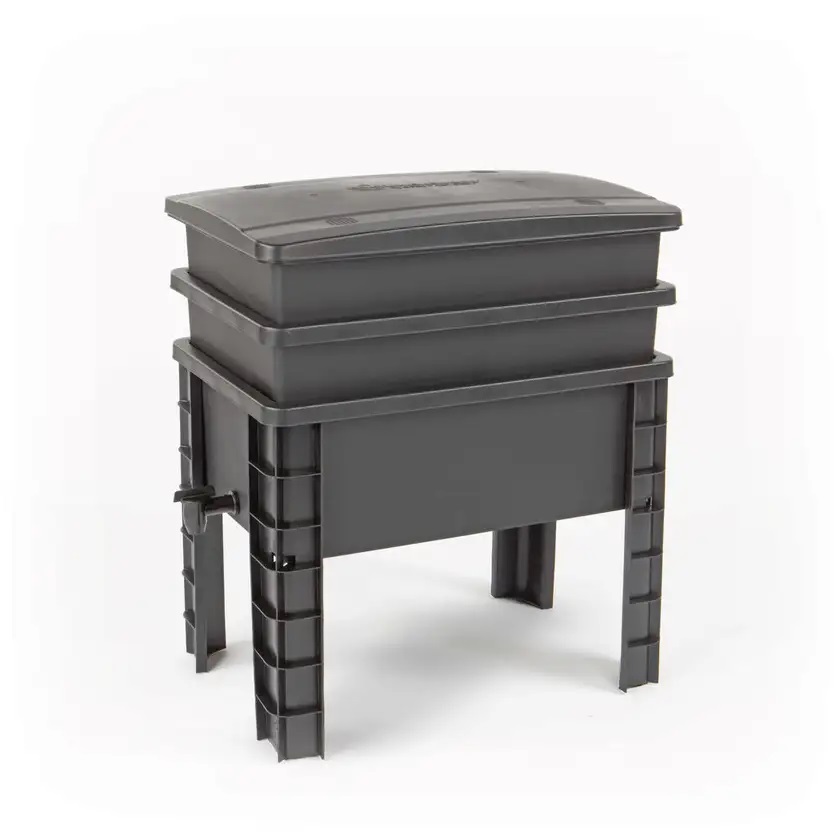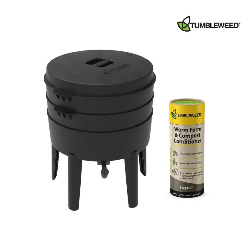 Made from 100% recycled UV Stabilised Plastic, Includes Worm Farm & Compost Conditioner, 2 x Large capacity working trays, ventilated lid, and collector tray for increased airflow. Worms not included
