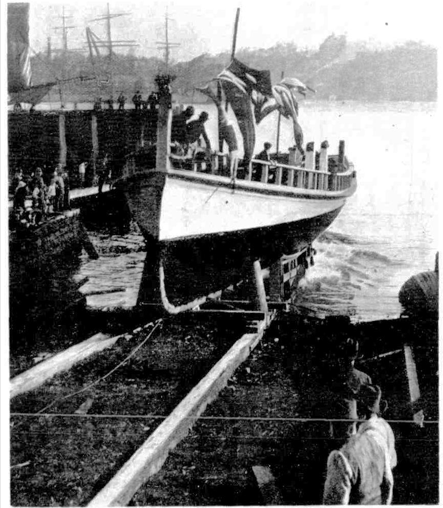 Furthermore, a schnapper cannot be played on a drifting steamer when there are 20 men alongside with their lines out yelling to a man to get his fish in and not let it stray in search of a shark. The fish does not come in like a log, but thumps and fights till it is out of the water. A favourite destination for the tugboats is Bird Island, about 40 miles north of Sydney. The boats start for a place so far away as Bird Island or Coalcliff shortly after midnight, and as the accommodation for sleeping on the craft is of the scantiest, men are fortunate who manage to get an hour or two of sleep before dawn. As dawn approaches men gather round the swinging lamp and ballot for positions on the boat. This proceeding is necessary, and is pretty well adopted on all the best trips organised in Sydney. It makes for discipline and comfort, and there is no need to bicker about anyone securing the best place. The fishing is only carried on from one side of the vessel as she drifts broadside to the wind or with the current. Sometimes, through, an. awkward arrangement of the coal or water ballast, a vessel will pay away faster forward than aft, and unless the engines are used to give her a kick occasionally the lines may all run the one way, instead of straight out from the side, and very soon there is a chance of their being twisted into one strong rope. Good skippers who know the drifting capacities of their boats have no difficulty with an uneven distribution of the weight within the vessel.